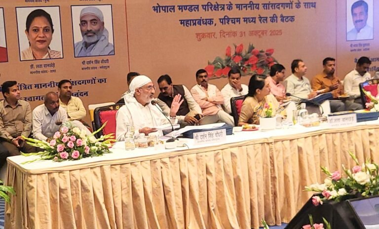 भोपाल । लेक फ्रंट ताज होटल, में भोपाल मंडल परिक्षेत्र के माननीय सांसद गणों के साथ महाप्रबंधक, पश्चिम मध्य रेल...