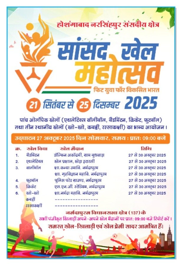 नर्मदापुरम। युवाओं को खेल एवं फिटनेस के प्रति प्रोत्साहित करने और खिलाडियों के लिए प्रतिभा प्रदर्शन के अवसर उपलब्ध कराने...