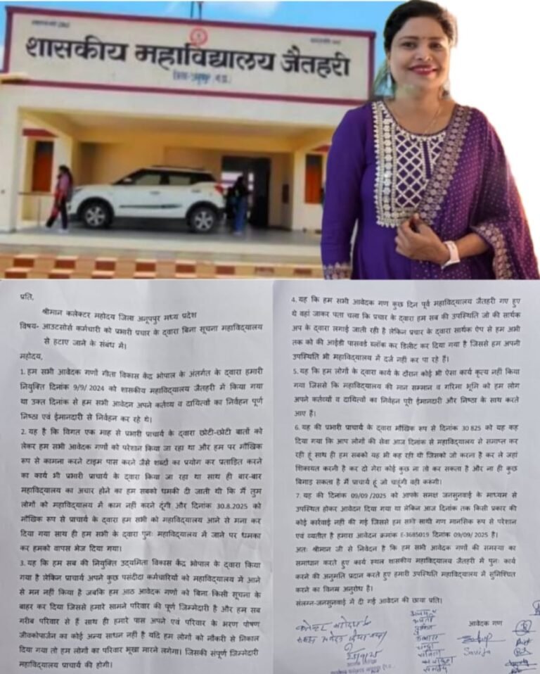महाविद्यालय के प्राचार्य ने छीन लिया आठ लोगों का रोजगार जैतहरी महाविद्यालय में महिला प्राचार्य की मनमानी नियमों का उल्लंघन...