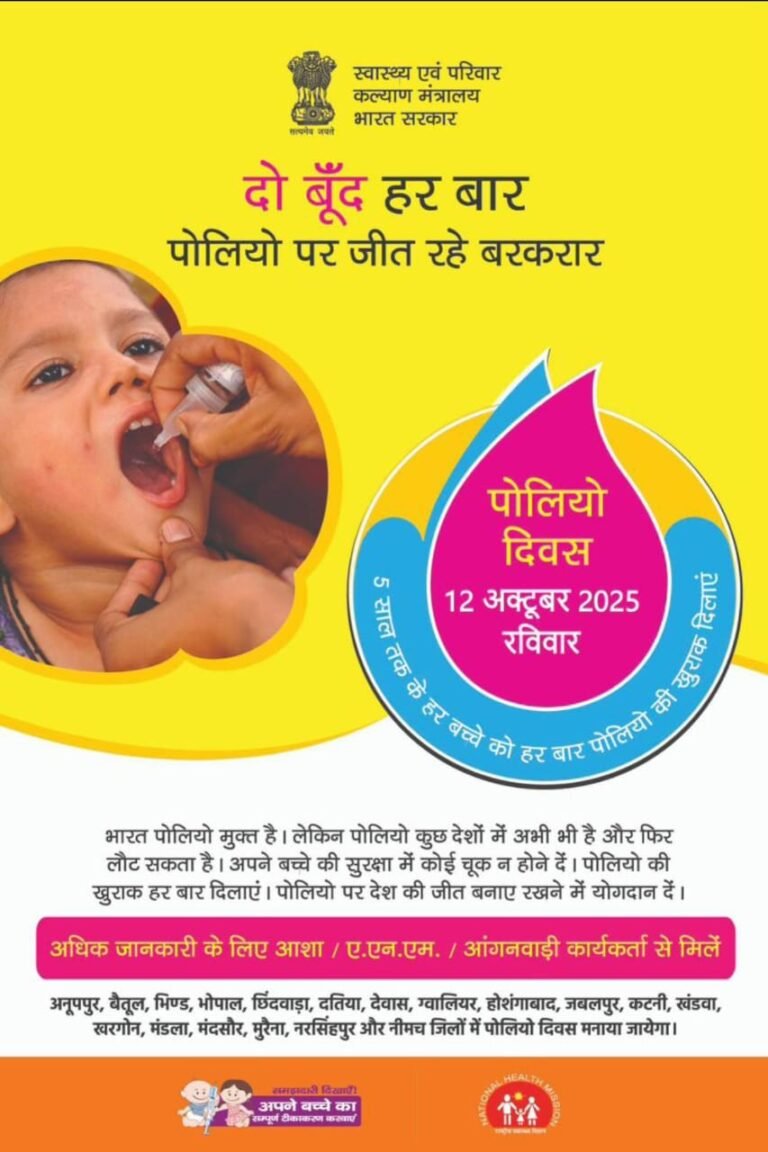 नर्मदापुरम। जिले में राष्ट्रीय पल्स पोलियो अभियान का शुभारंभ 12 अक्टूबर, रविवार को किया जा रहा है। यह अभियान कलेक्टर...