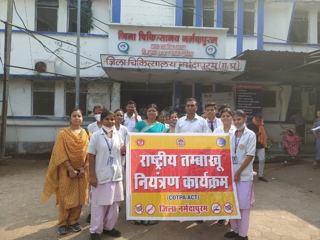 नर्मदापुरम। राष्ट्रीय तंबाकू नियंत्रण कार्यक्रम के तंबाकू मुक्त युवा अभियान 3.0 के अंतर्गत जिला अस्पताल नर्मदापुरम में लोगों को तंबाकू के हानिकारक प्रभावों के बारे में जागरूक करने के लिए नुक्कड़ नाटक का आयोजन किया गया और रैली निकाली गई। इसके माध्यम से तंबाकू और उसके उत्पादों तथा इलेक्ट्रॉनिक सिगरेट के हानिकारक प्रभावों के बारे में जानकारी दी गई और कोटपा अधिनियमों की भी जानकारी दी गई। निकोटीन रिप्लेसमेंट थेरेपी/निकोटीन टैबलेट के उपयोग की जानकारी दी गई।