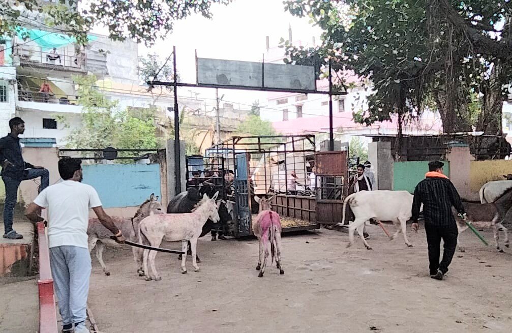 नर्मदापुरम्। नगरपालिका के हाका दल ने आज नगर में आवारा घूम रहे गाधों और सांडों को नगर सीमा से बाहर किया गया। साथ ही पशु पालकों को समझाइश दी गई कि अब दोबारा पशु खुले मिले तो जुर्माने की भी कार्रवाई की जाएगी। हाका दल प्रभारी गगन सोनी ने बताया कि नपाध्यक्ष नीतू महेंद्र यादव एवं मुख्य नगरपालिका अधिकारी हेमेश्वरी पटले के सख्त निर्देश पर हाका दल द्वारा समूचे नगर में आवारा पशुओं को पकड़ने का अभियान और उन्हें नगर सीमा से बाहर करने की कार्रवाई की जा रही है। शनिवार को नगर में आवारा पशुओं को पकड़ने का चलाए गए अभियान में 13 गधे और 6 सांडों को पकड़कर नगर सीमा से बाहर किया गया। पशु मालिकों को भी समझाइश दी गई। किसी भी पशु मालिका के पशु सड़क पर आवारा घूमते हुए पाए जाएंगे उन पर जुर्माने की कार्रवाई की जाएगी एवं नगर में चहुंओर आवारा पशुओं की सर्चिंग की जा रही है और उन्हें नगर सीमा से बाहर किया जा रहा है ।