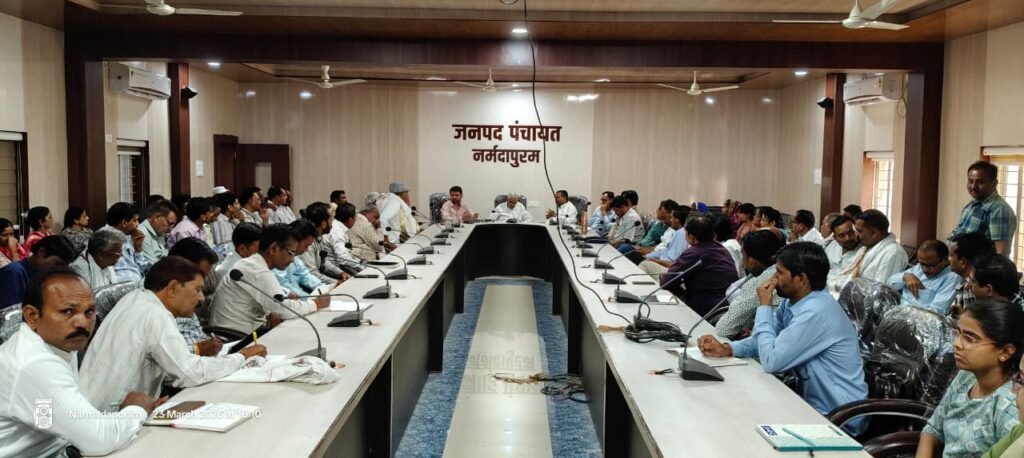 नर्मदापुरम । विधायक एवं मध्यप्रदेश विधानसभा के पूर्व अध्यक्ष डॉ. सीतासरण शर्मा की अध्यक्षता में नरवाई (पराली) प्रबंधन एवं फसल अवशेषों से होने वाली आगजनी की घटनाओं की रोकथाम हेतु जनपद पंचायत नर्मदापुरम सभागार में एक महत्वपूर्ण बैठक आयोजित की गई।