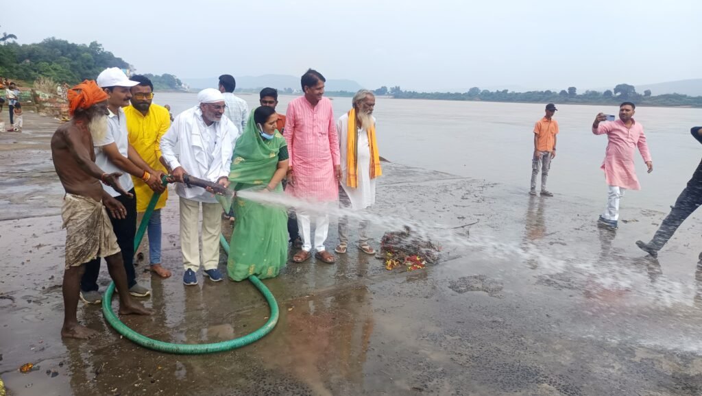 स्वच्छता सेवा पखवाड़ा के तहत विवेकानंद घाट पर किया जनप्रतिनिधिगणों, अधिकारियों और कर्मचारियों ने श्रमदान