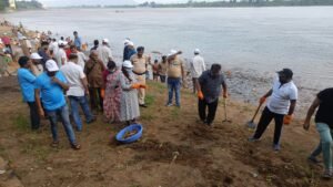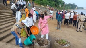स्वच्छता सेवा पखवाड़ा के तहत विवेकानंद घाट पर किया जनप्रतिनिधिगणों, अधिकारियों और कर्मचारियों ने श्रमदान