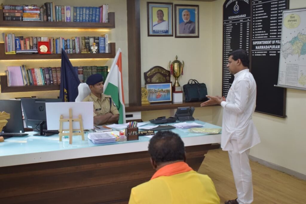नर्मदापुरम । पुलिस अधीक्षक साई कृष्णा (भापुसे) द्वारा पुलिस अधीक्षक कार्यालय नर्मदापुरम में साप्ताहिक जनसुनवाई आयोजित की गई। जनसुनवाई में जिले के विभिन्न क्षेत्रों से आए नागरिकों की शिकायतें सुनी गईं। जनसुनवाई के दौरान कुल 21 आवेदन प्राप्त हुए, जिनमें मुख्य रूप से चोरी, वित्तीय धोखाधड़ी, मारपीट एवं महिला संबंधी प्रकरण शामिल थे। पुलिस अधीक्षक ने प्रत्येक शिकायत को गंभीरता से सुनते हुए संबंधित अनुविभागीय अधिकारी एवं थाना प्रभारियों को मौके पर ही त्वरित कार्रवाई करने के निर्देश दिए। जनसुनवाई का मुख्य उद्देश्य आम नागरिकों की समस्याओं का शीघ्र समाधान करना, पुलिस-जन संवाद को मजबूत बनाना, नागरिकों को न्याय दिलाना तथा पुलिस प्रशासन में विश्वास बनाए रखना पुलिस विभाग की सर्वोच्च प्राथमिकता है। जनसुनवाई कार्यक्रम प्रत्येक मंगलवार को पुलिस अधीक्षक कार्यालय नर्मदापुरम में नियमित रूप से आयोजित किया जाता है, जिसमें जिलेभर से आए नागरिक अपनी समस्याओं का प्रत्यक्ष निराकरण पा सकते हैं।