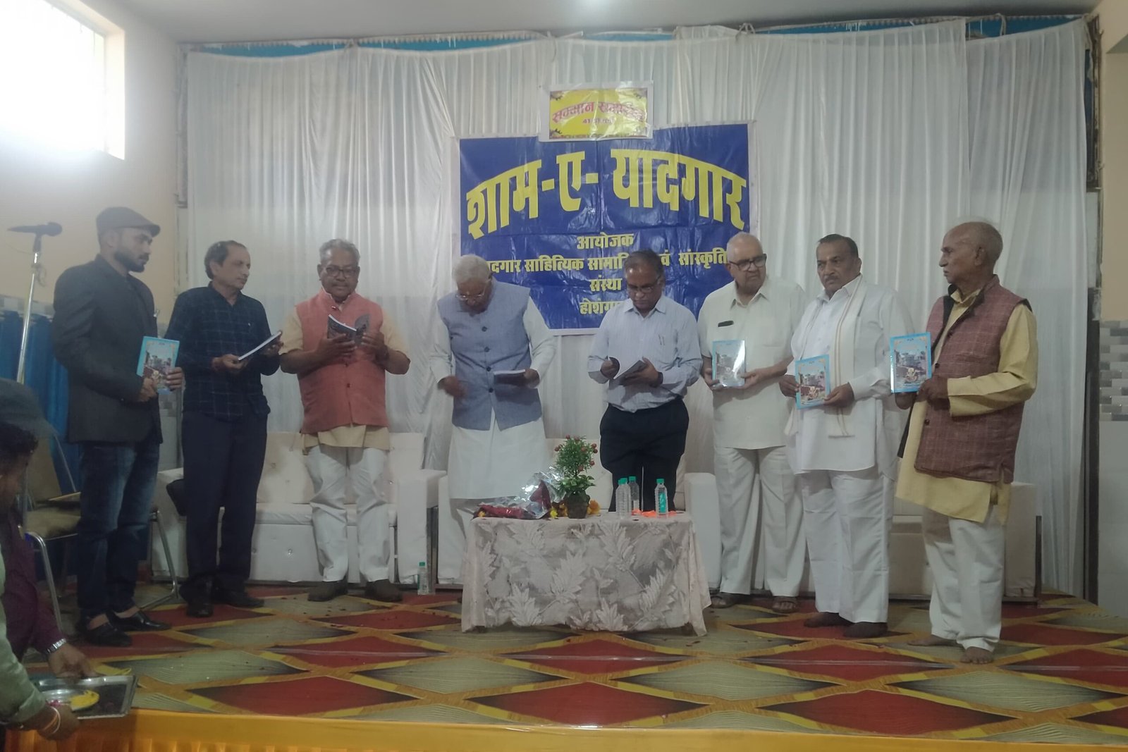 कार्यक्रम से पूर्व दूरदर्शन कलाकार ओपी शर्मा आनंद नामदेव एवं अन्य सहयोगियों के द्वारा गीत प्रस्तुत किए गए। इस दौरान विभूतियों का एवं अतिथियों का समाज के वरिष्ठ जनों एवं आयोजन समिति के द्वारा स्वागत सम्मान किया गया कार्यक्रम में बड़ी संख्या में क्षेत्र के साहित्यकार पत्रकार एवं अन्य विशिष्ट जन मौजूद रहे।